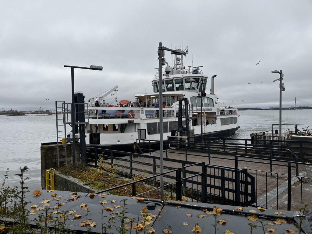 Die Fähre nach Soumenlinna ist gerade nicht da aber kommt in ein paar Minuten – das Ticket für die Fähre ist im Tagesticket enthalten. ⛴️