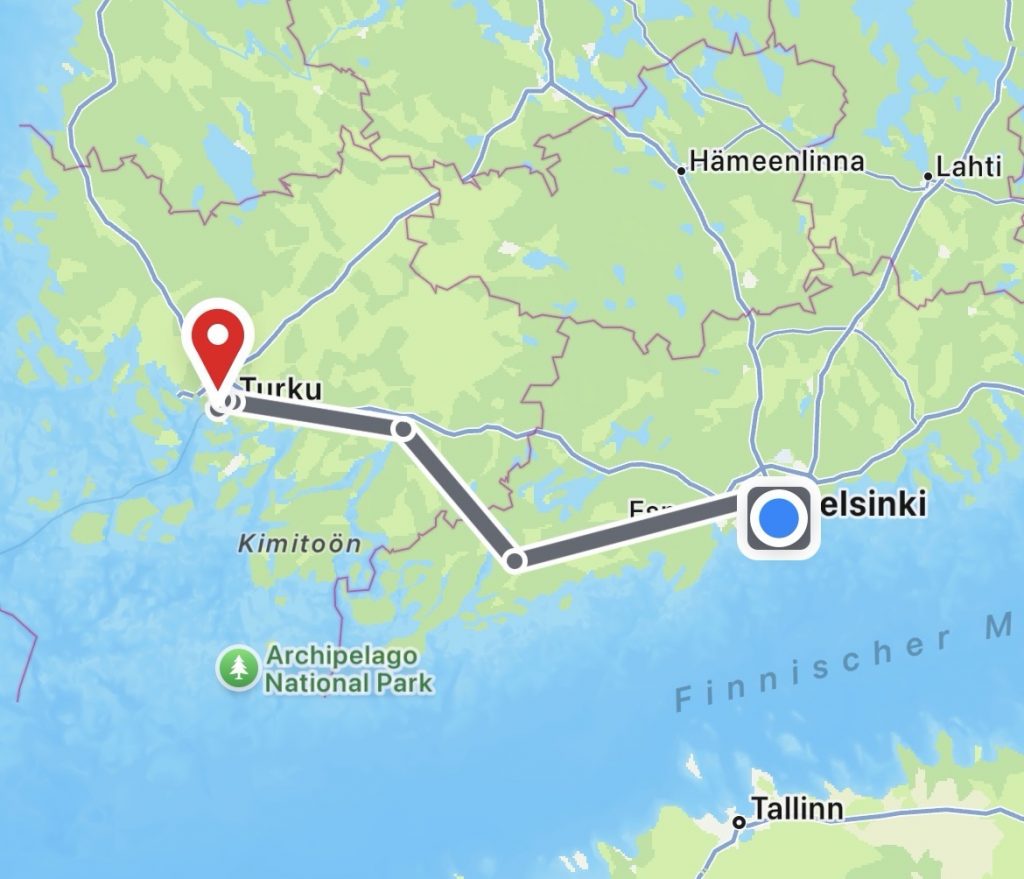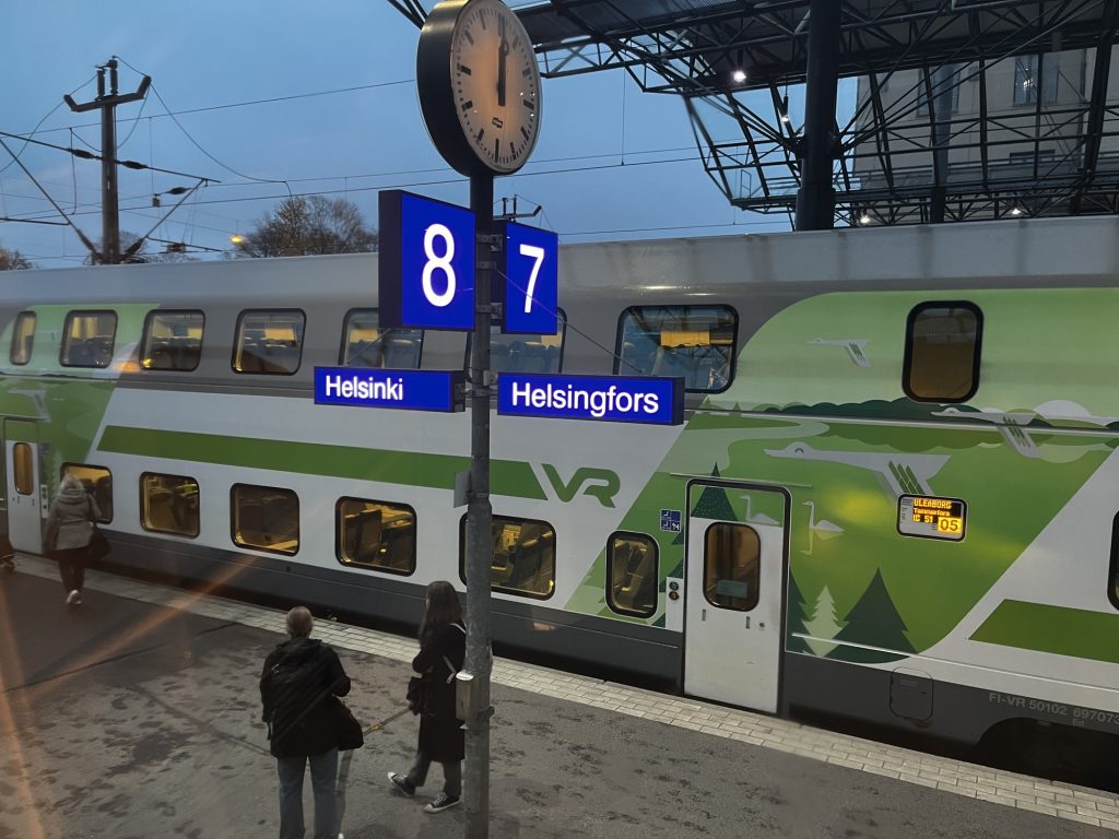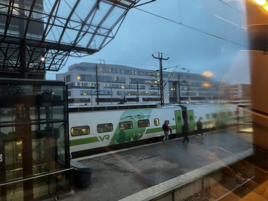 Der Zug bringt mich jetzt nach Turku bis zum Fährhafen. Da kann ich hoffentlich ohne große Wartezeiten einchecken, Gepäck in die Kabine und die Fahrt durch die Schären an Deck genießen. Je nach Wetter halt.