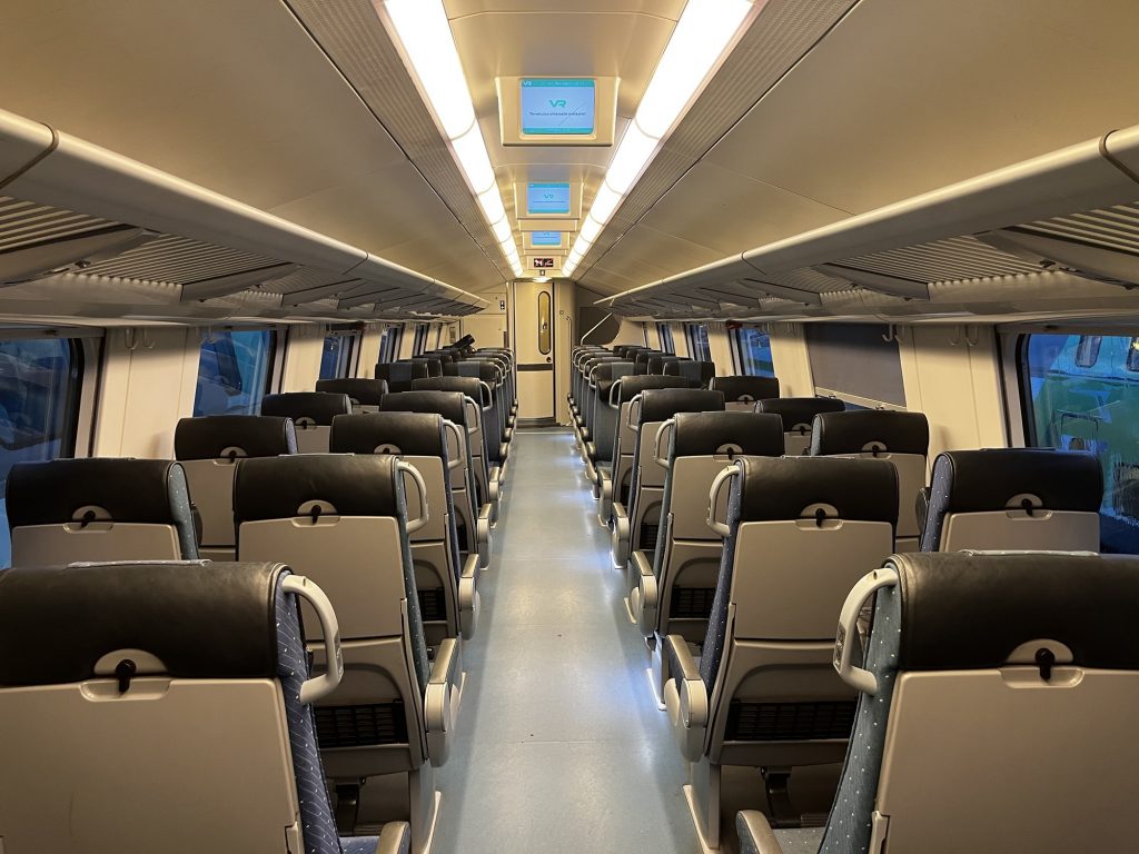 Der Zug wird reichlich vor Abfahrt bereitgestellt und ich kann kurz nach 16:00 einsteigen. Warm und trocken ist eine gute Sache.