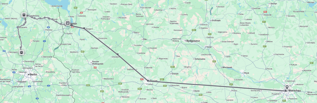 Heute führt mich die Reise von der Mark Brandenburg weiter über Neubrandenburg und Stettin nach Warschau. Man könnte natürlich auch direkt von Berlin aus fahren, aber gerade gibt es ausgerechnet auf dieser Strecke Baustellen und Schienenersatzverkehr. Und da ich nun einmal die Bahn liebe und den Bus meiden möchte, nehme ich den kleinen Umweg mit einem Lächeln in Kauf.