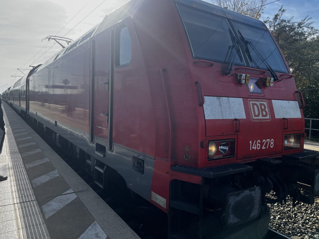 So wird der DB rote RegionalExpress mich auf der ersten Etappe nun erstmal bis nach Neubrandenburg bringen. Gut besetzt und mit ein paar Minuten Verspätung. Viele Reisende haben Fahrräder, Roller oder so wie ich einen großen Koffer dabei. Da ist selbst der große Mehrzweckbereich gut ausgelastet.