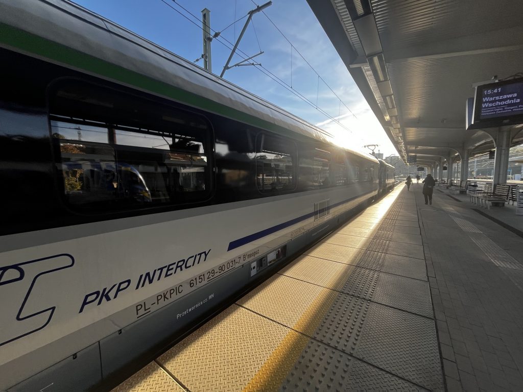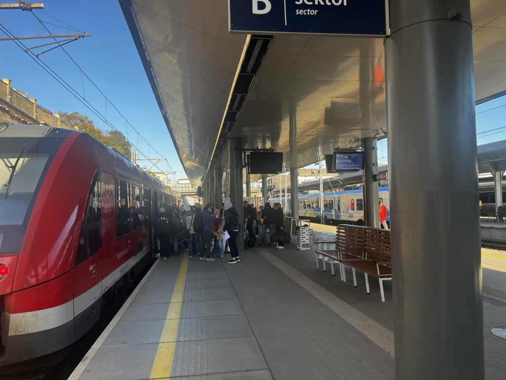 Kaum ist der Zug eingefahren – pünktlich auf die Minute bereitgestellt – stehe ich natürlich im falschen Bahnsteigbereich – so etwas wie Wagenstandanzeiger gibt es hier nicht, weder am Bahnsteig, noch auf den elektronischen Anzeigen oder in den Apps der PKP, obwohl am Bahnsteig je Gleis eine Beschilderung mit Abschnitten von A bis D vorhanden ist, ähnlich wie bei uns. Ich bin schon froh, dass ich auf der polnischen Webseite „Rozklad-PKP“ (Zeitplan PKP) das richtige Abfahrtgleis gefunden habe, denn der DB Navigator schweigt sich dazu aus. In Polen sind die Züge nach Bahnsteig und Gleis – I/4 – im Fahrplan angegeben, also muss man an sich nur den richtigen Bahnsteig – in meinen Fall I – und dann dort das richtige Gleis – hier 4 – finden.
