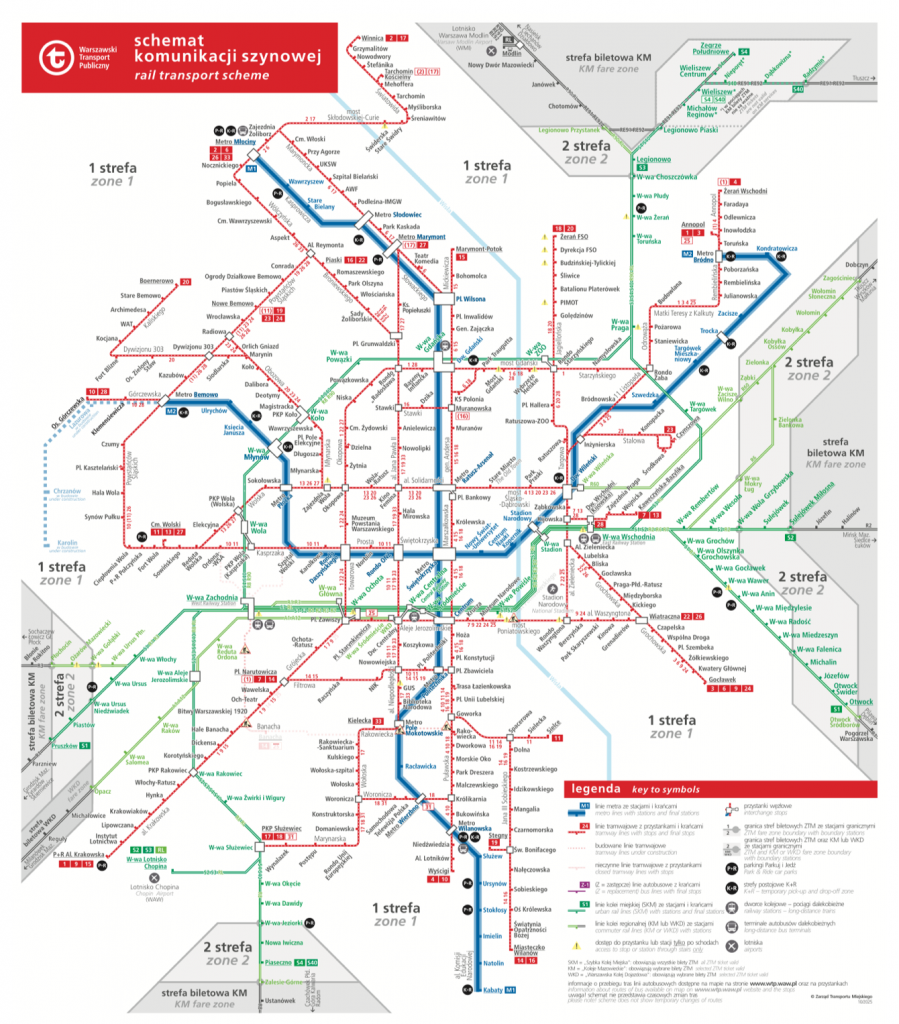 Karte des öffentlichen Schienen-Nahverkehrs in Warschau