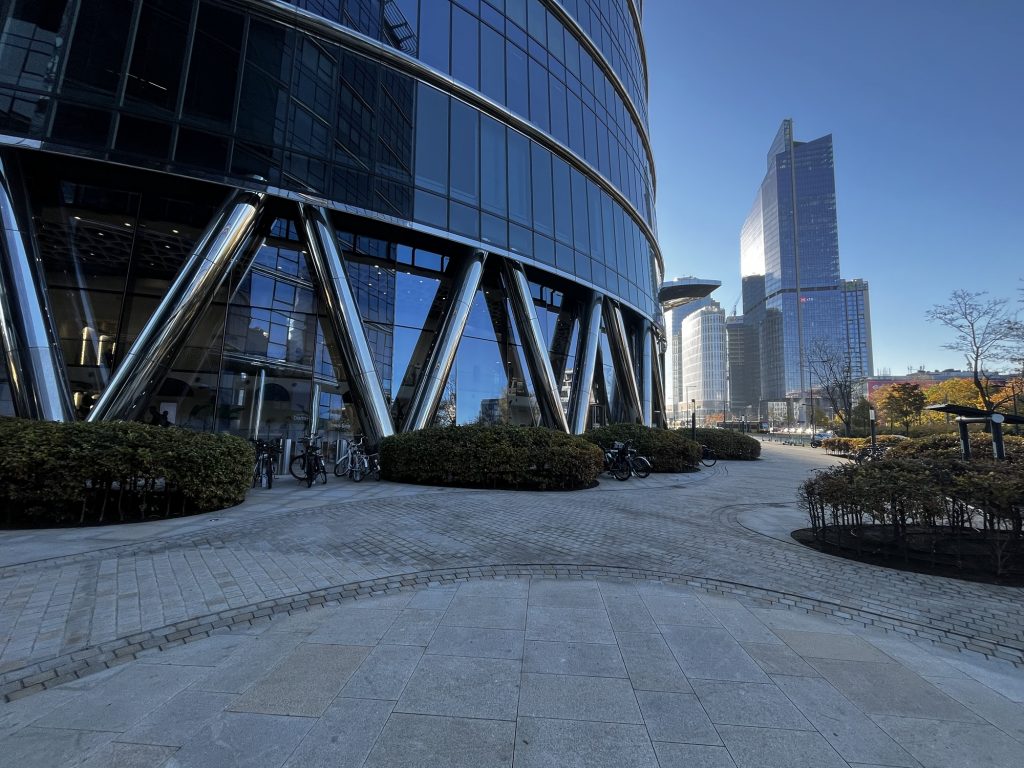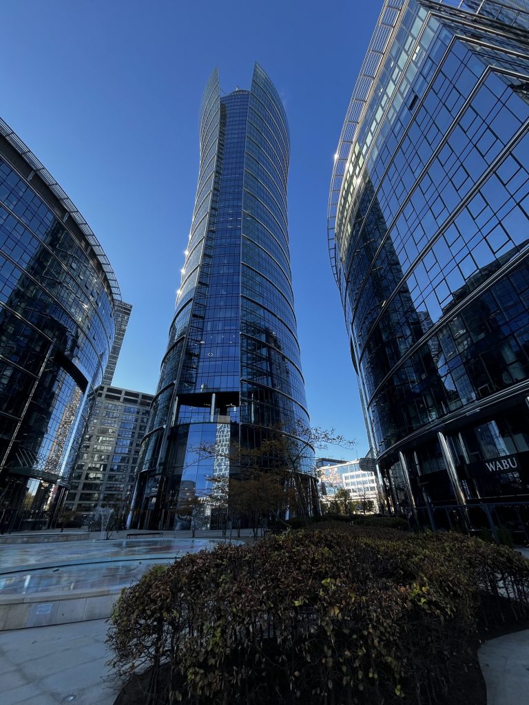 Also kleine Programmänderung: Heute keine Geschichte aus der Zeit des zweiten Weltkrieges. Aber wenn ich schonmal da bin, schaue ich mir den „Warsaw Spire“ an – eines der höchsten Gebäude der Stadt – und von ganz Europa. 49 Etagen auf 220 m Gebäudehöhe sind schon sehr beeindruckend, insbesondere wenn man direkt davor steht.