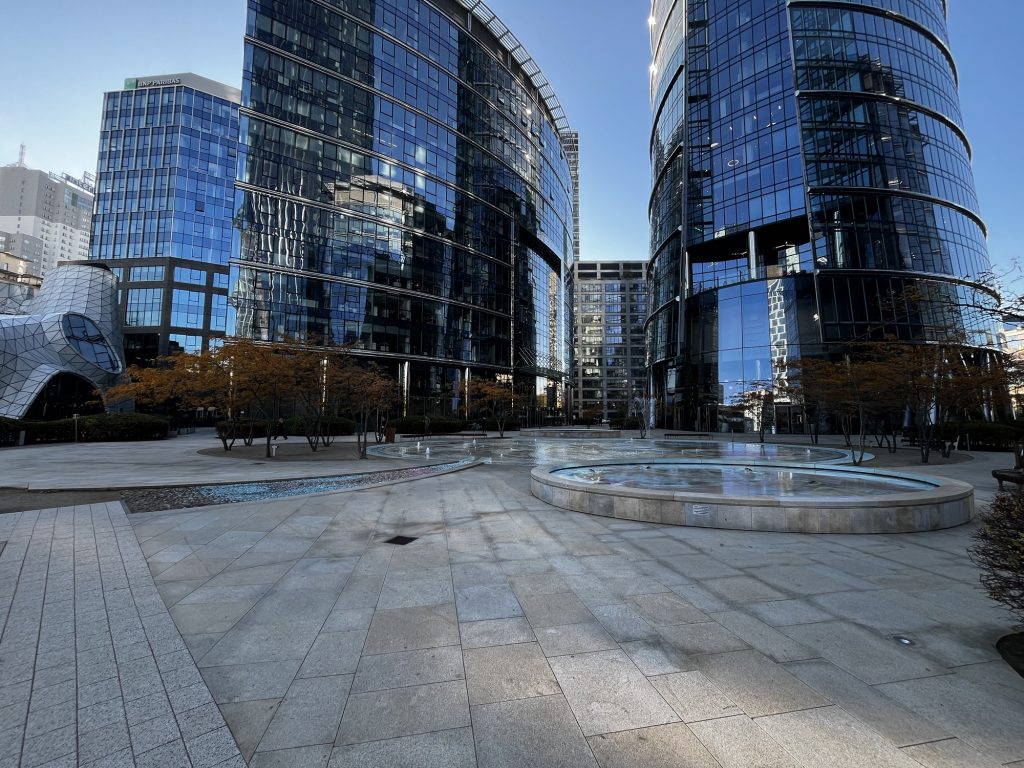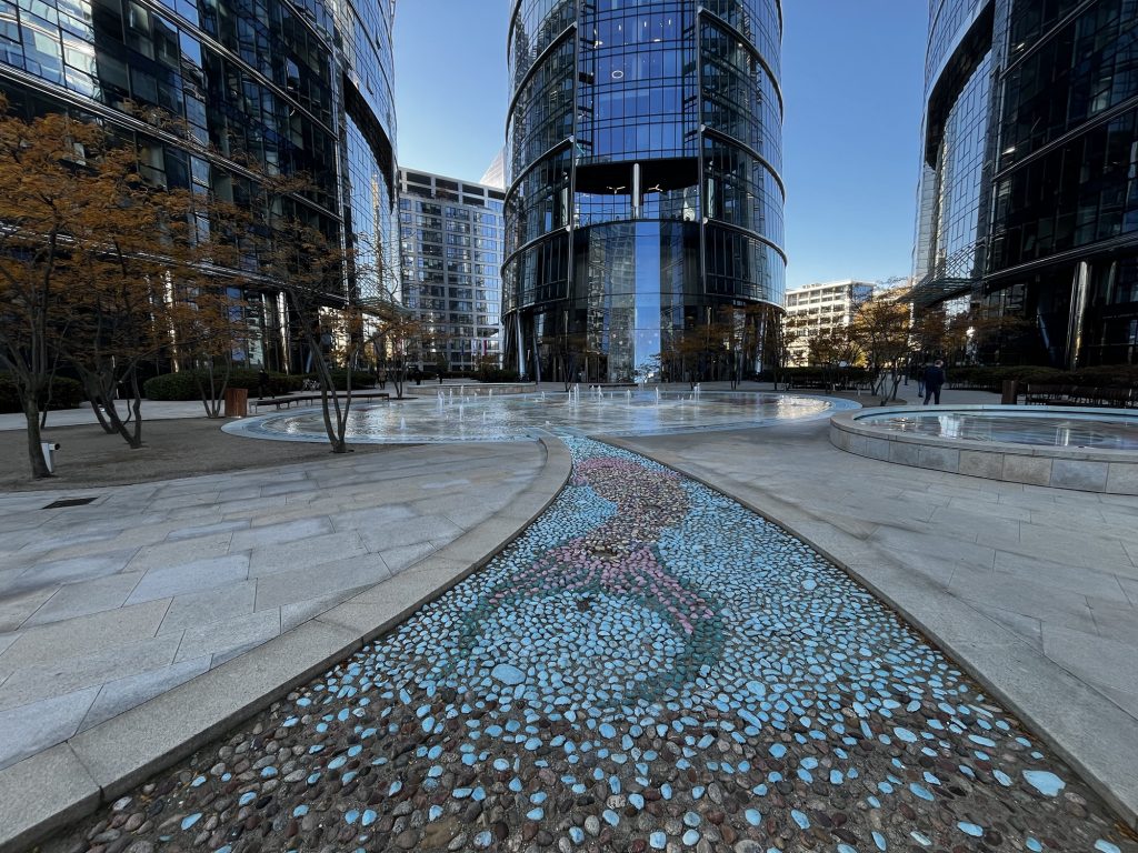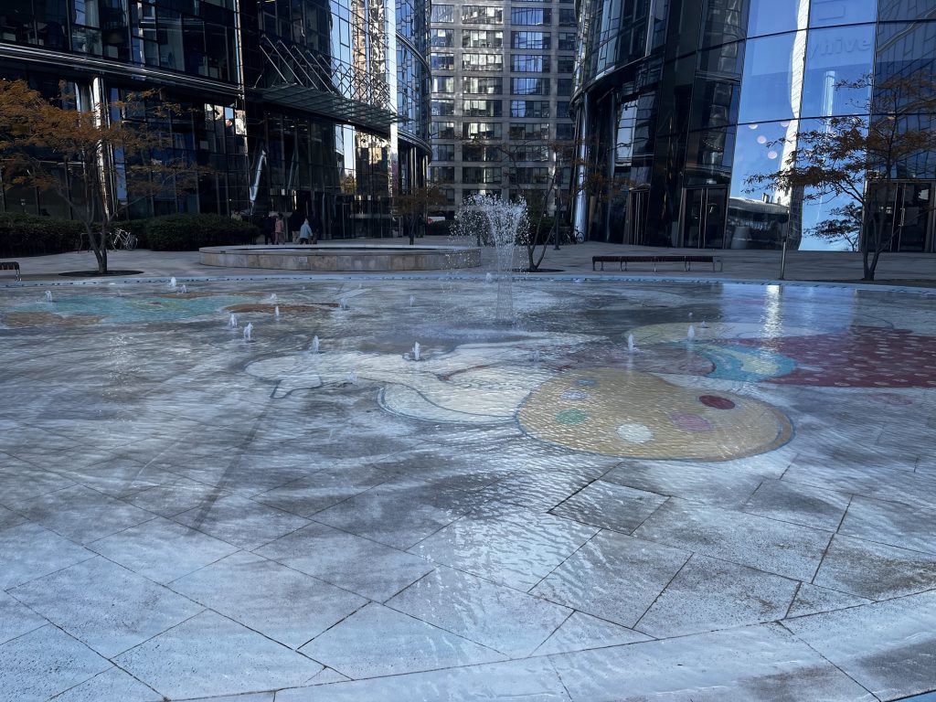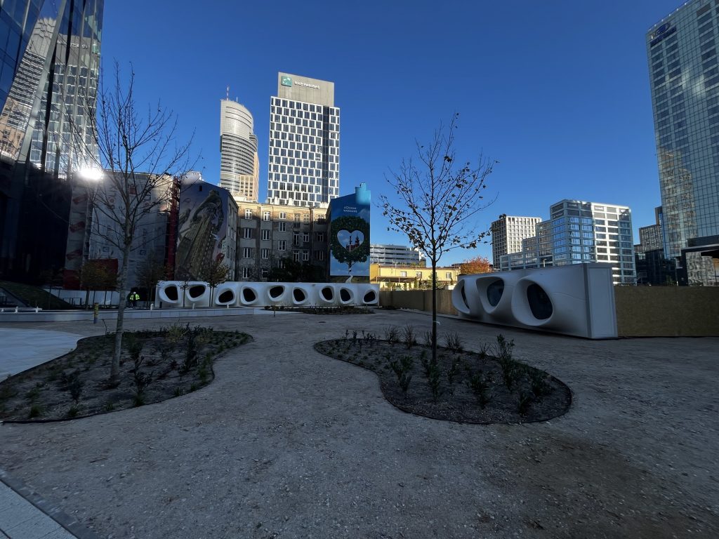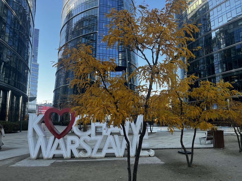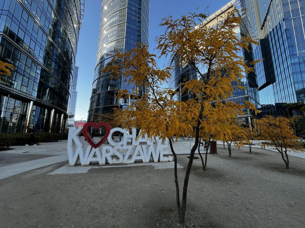 Hinter dem Gebäudekomlex befindet sich ein Patio Bereich mit dem Foto Motiv „K ❤️ CHAM WARSZAWE“ – muss man nicht übersetzen. Was allerdings erstaunt: Dass bei 3° Außentemperatur die Springbrunnen laufen. Überall im Gelände sind noch Bauarbeiten, aber man kann schon erahnen, wie schön es mal werden wird. Vielleicht komme ich ja mal wieder in ein paar Jahren.