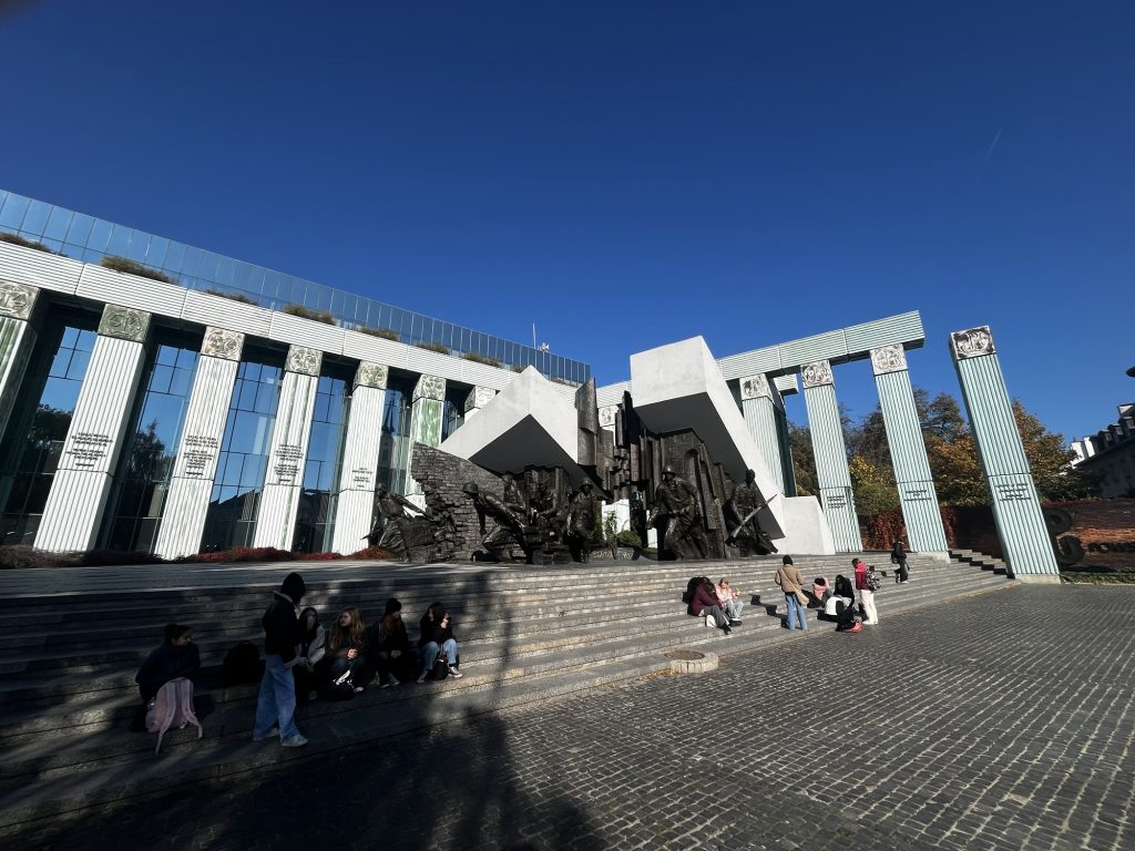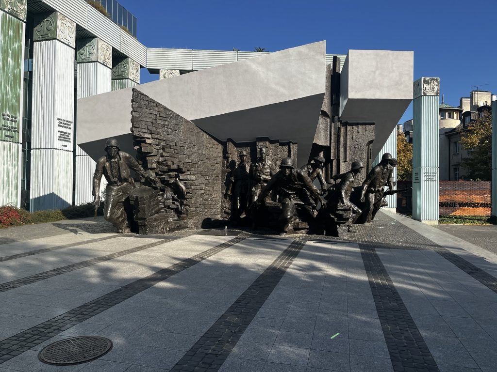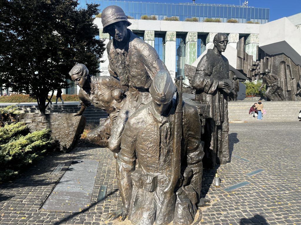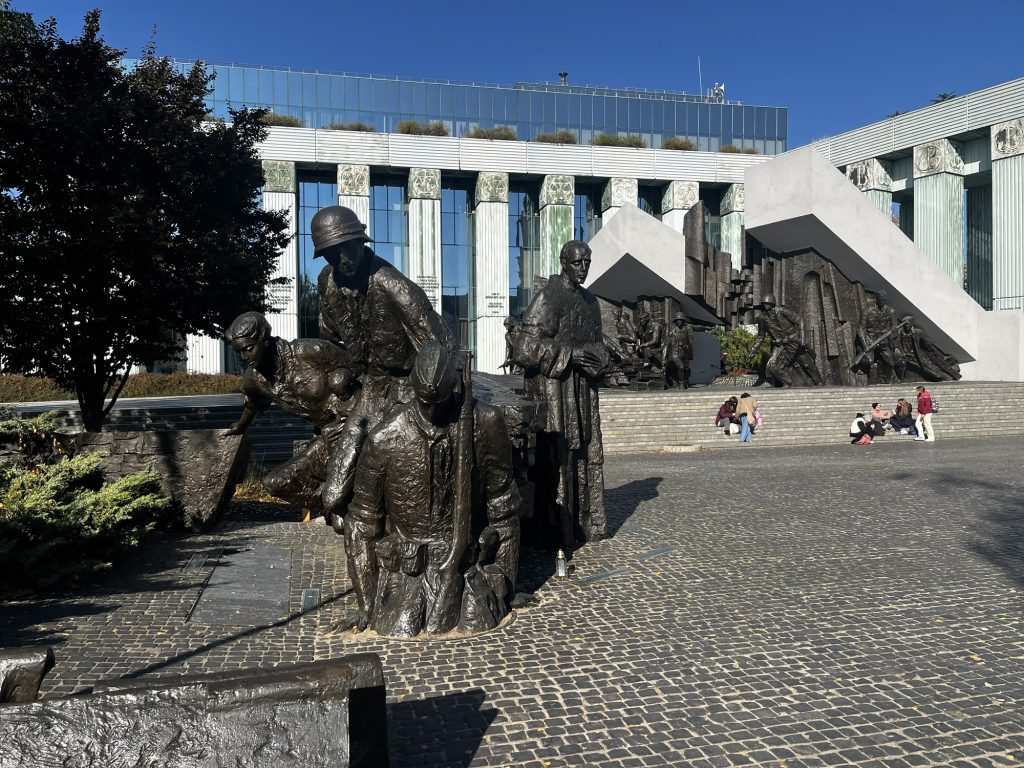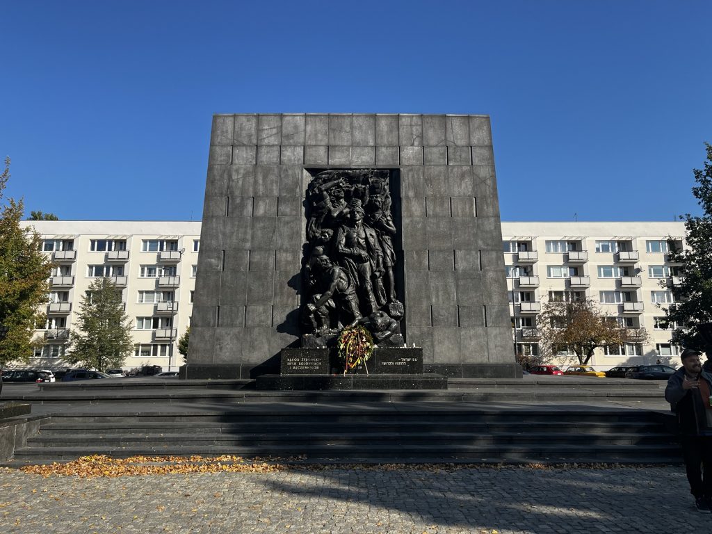 Direkt vor dem Museum steht das Warschauer Ghetto Ehrenmal. Vor diesem kniete Willy Brandt im Dezember 1970 während der Zeremonie einer Kranzniederlegung spontan nieder.