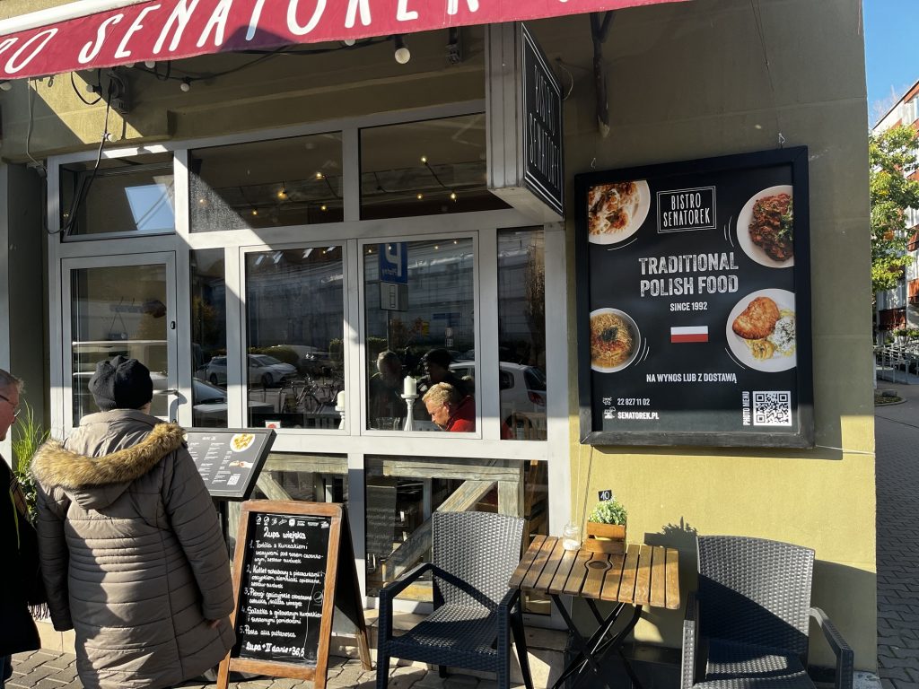 So langsam packt mich um die späte Mittagszeit der Hunger. Also suche ich mal nach einem original polnischen Restauraunt und finde das „Bistro Senatorek“ mit einer wunderbaren Mittagskarte von der ich kein Wort verstehe.