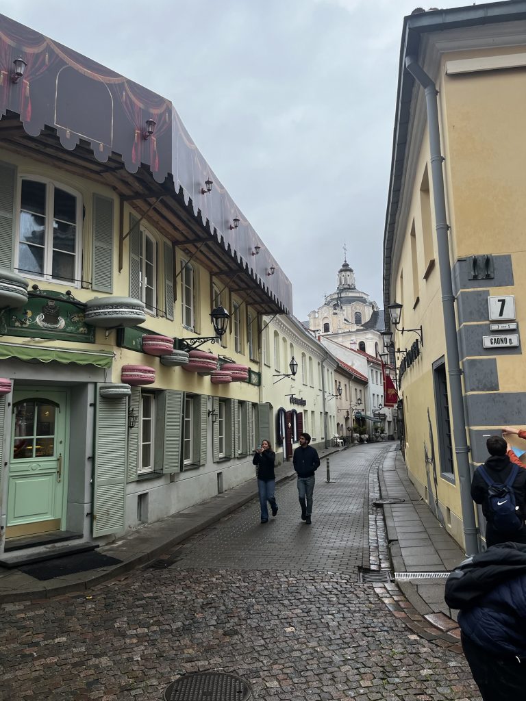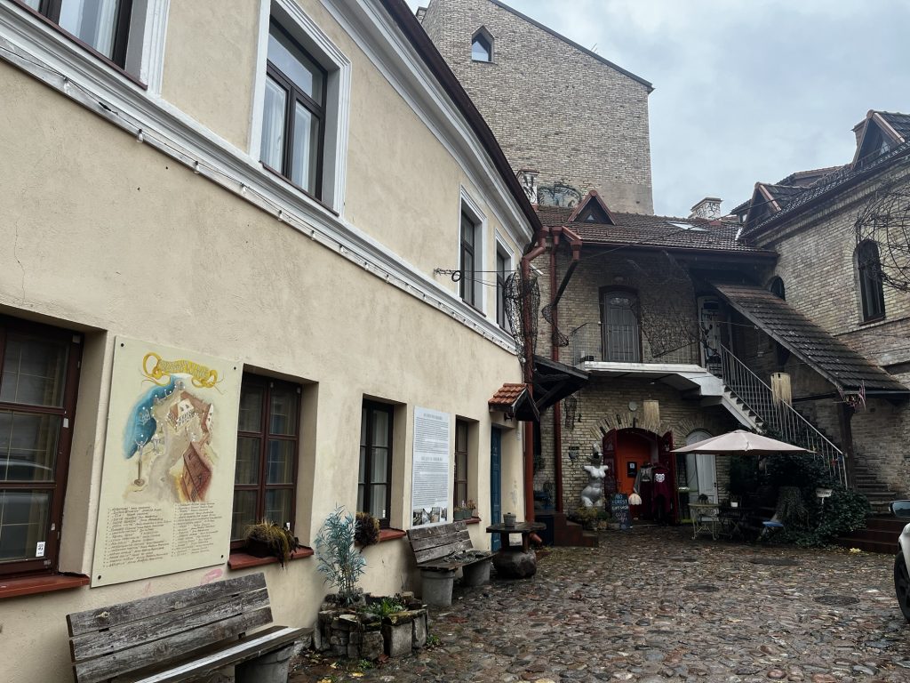 Ich streife noch ein wenig kreuz und quer durch die Altstadt von Vilnius und komme zufällig an dieser kleinen Bäckerei vorbei: Kmyninė kepykla (Duona) – wer mal nach Vilnius kommt: bester Kaffee und super leckere selbst gebackene Kekse und andere lokale Süßigkeiten. Besondere zu empfehlen: die Pilze (die mit echten Pilzen nichts zu tun haben).