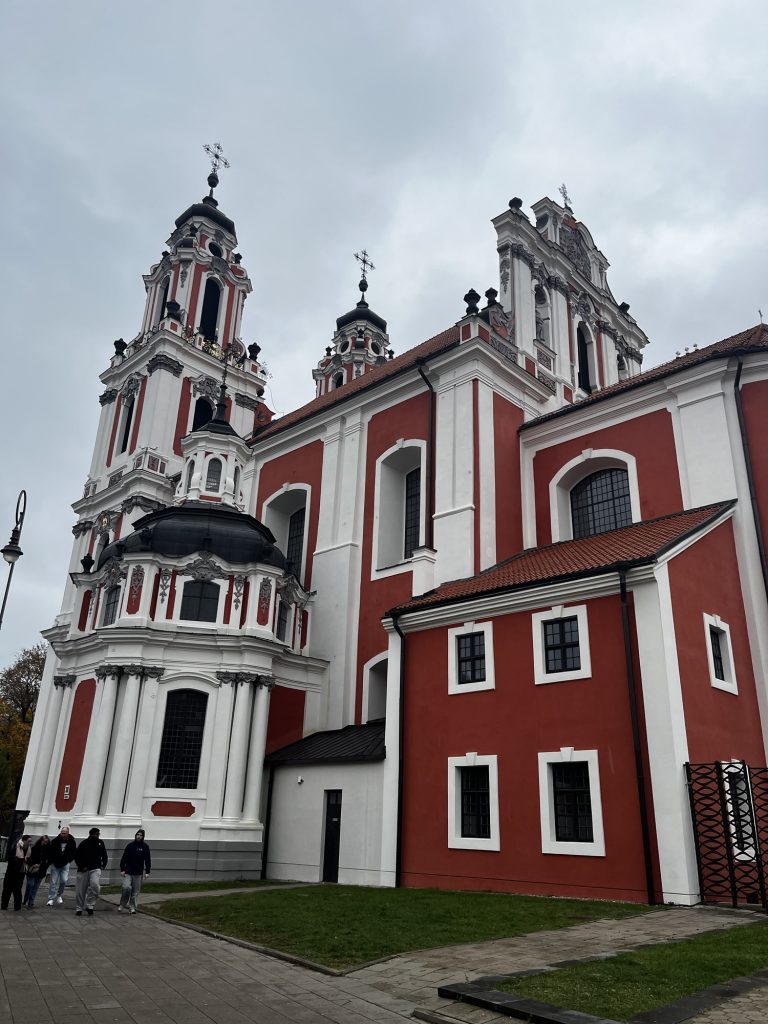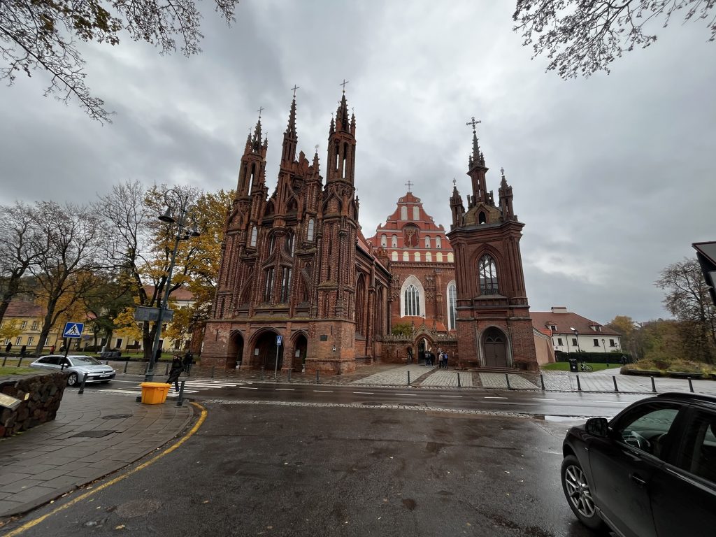 Kaum haben wir Užupis verlassen, stehen wir gleich vor zwei Kirchen. Die eine außen wunderschön und innen extrem schlicht – die andere von außen extrem schlicht und von innen sehr schön.