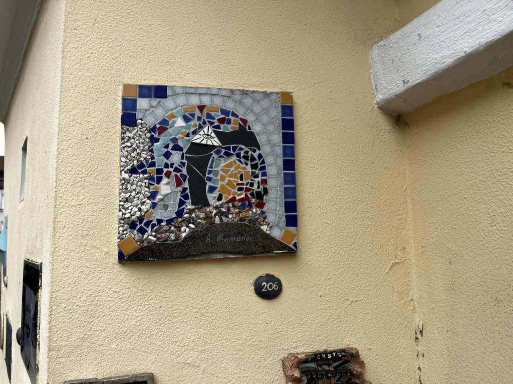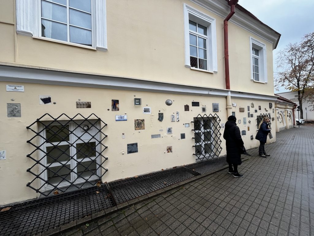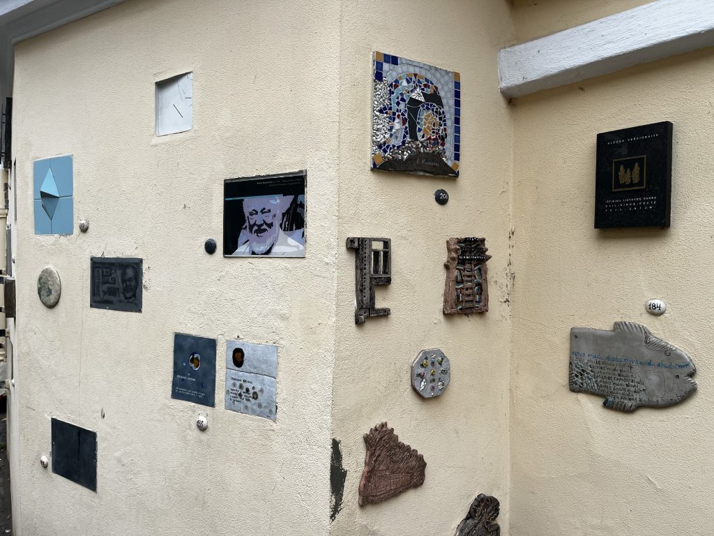 Ein paar Meter weiter endet die Tour in der Literatų g. Hier sind hunderte kleine Kunstwerke in den Wänden eingelassen. Mir gefällt besonderen die Nummer 206.