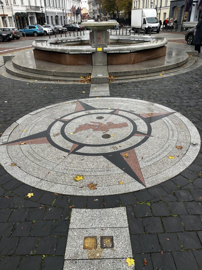 Einige Meter weiter treffe ich wieder auf den Platz vor dem Rathausm wo wir schon während der Stadtführung waren. nur haben wir den im Boden eingelassenen Kompass mit zugehörigem Brunnen links liegen gelassen.